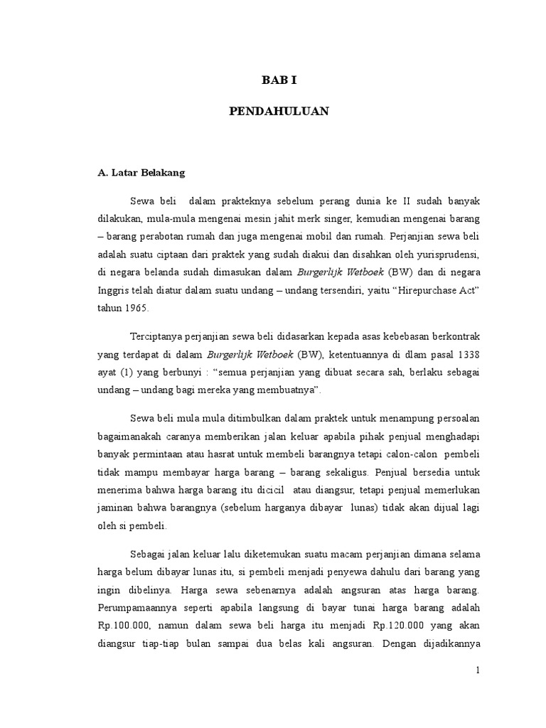 Penelitian ini bertujuan untuk mengetahui pengaruh pembiayaan jual beli bagi hasil sewa menyewa dan Non Performing Financing NPF terhadap profitabilitas Bank Umum Syariah di Indonesia pada periode 2016-2018 baik secara parsial maupun simultan. Untuk sahnya suatu perjanjian harus dipenuhi syarat sahnya perjanjian yang diatur dalam Pasal 1320 KUH. Persamaan dan perbedaan antara perjanjian sewa beli dengan jual beli.