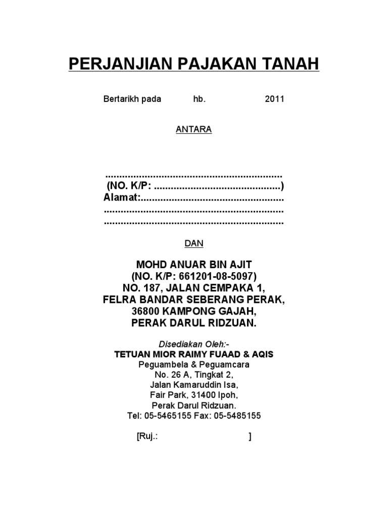 Perjanjian Pajakan Tanah Bt5 Felcra Nasaruddin